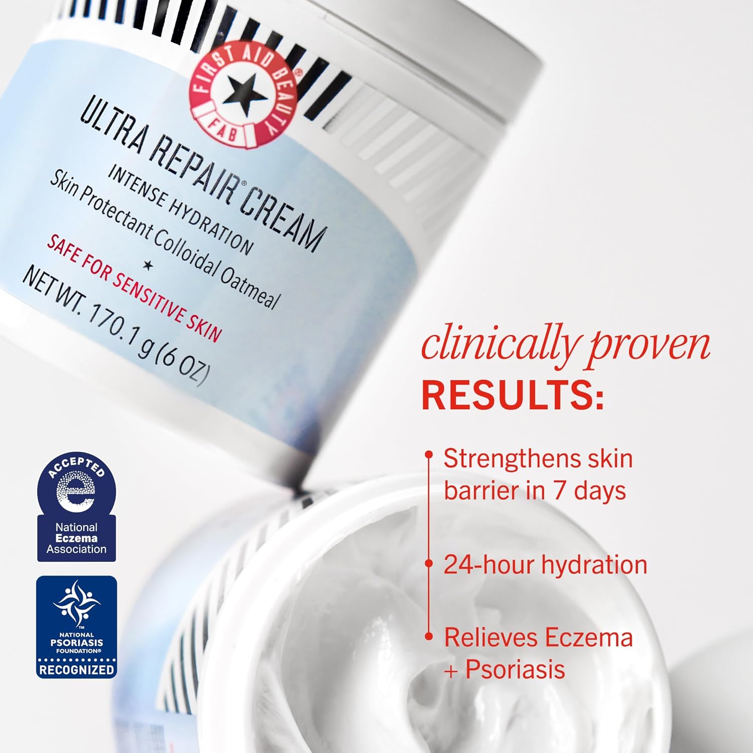First Aid Beauty - Ultra Repair Cream, Intense Hydration Whipped Colloidal Oatmeal, Clinically Proven to Strengthen Skin Barrier in 7 Days & Helps Relieve Eczema, Luxury Face & Body Moisturizer, 2 oz