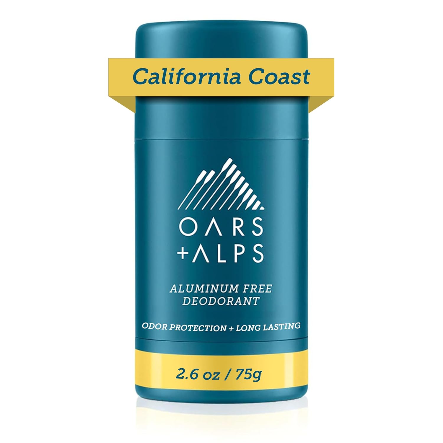 Oars + Alps Natural Deodorant for Men & Women, Aluminum Free Deodorant for Men, Dermatologist Tested, Clean Ingredients, Non Toxic, Vegan, Long Lasting, Odor Protection, California Coast, 1pk, 2.6oz
