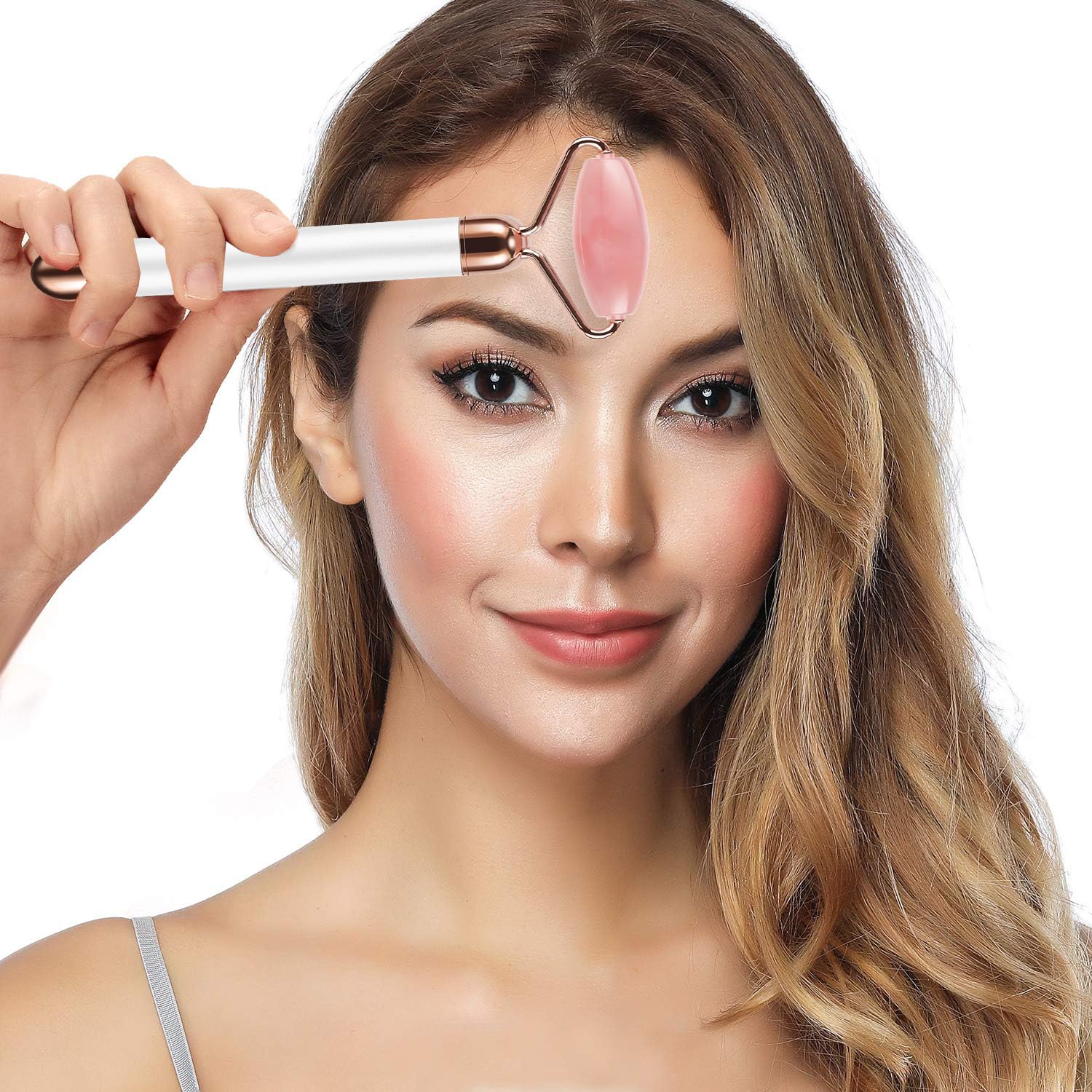 3-IN-1 Electric Jade Roller 3D Roller Facial Roller & Face Massager, Rose Quartz