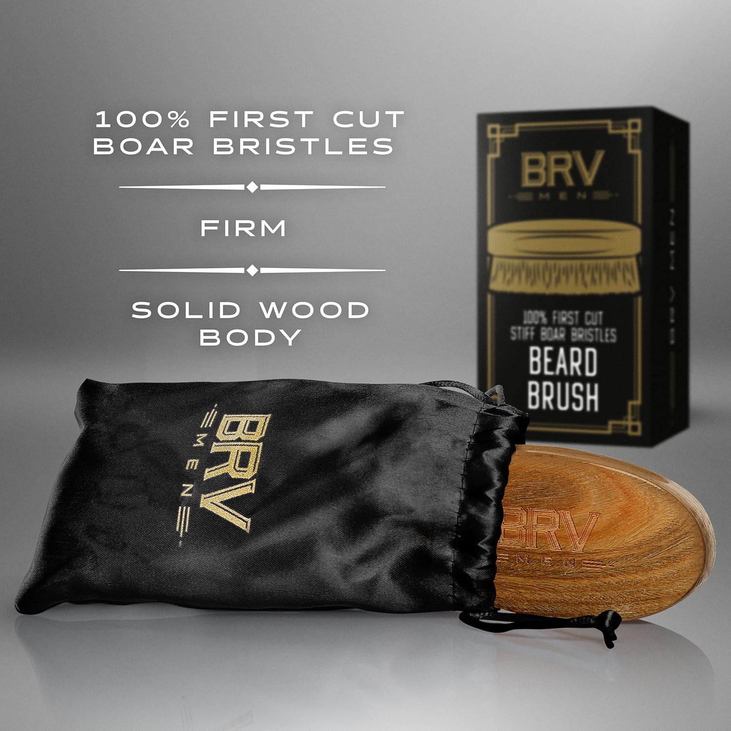 - 100% FIRST CUT PURE BOAR BRISTLES - Even your most manly characteristic, your beard, has a soft side if treated properly. The superior bristles of the BRV MEN beard brush is 100% made of naturally firm, first-cut boar hair bristles. This allows the discerning man to conveniently tame the wildest of beards.