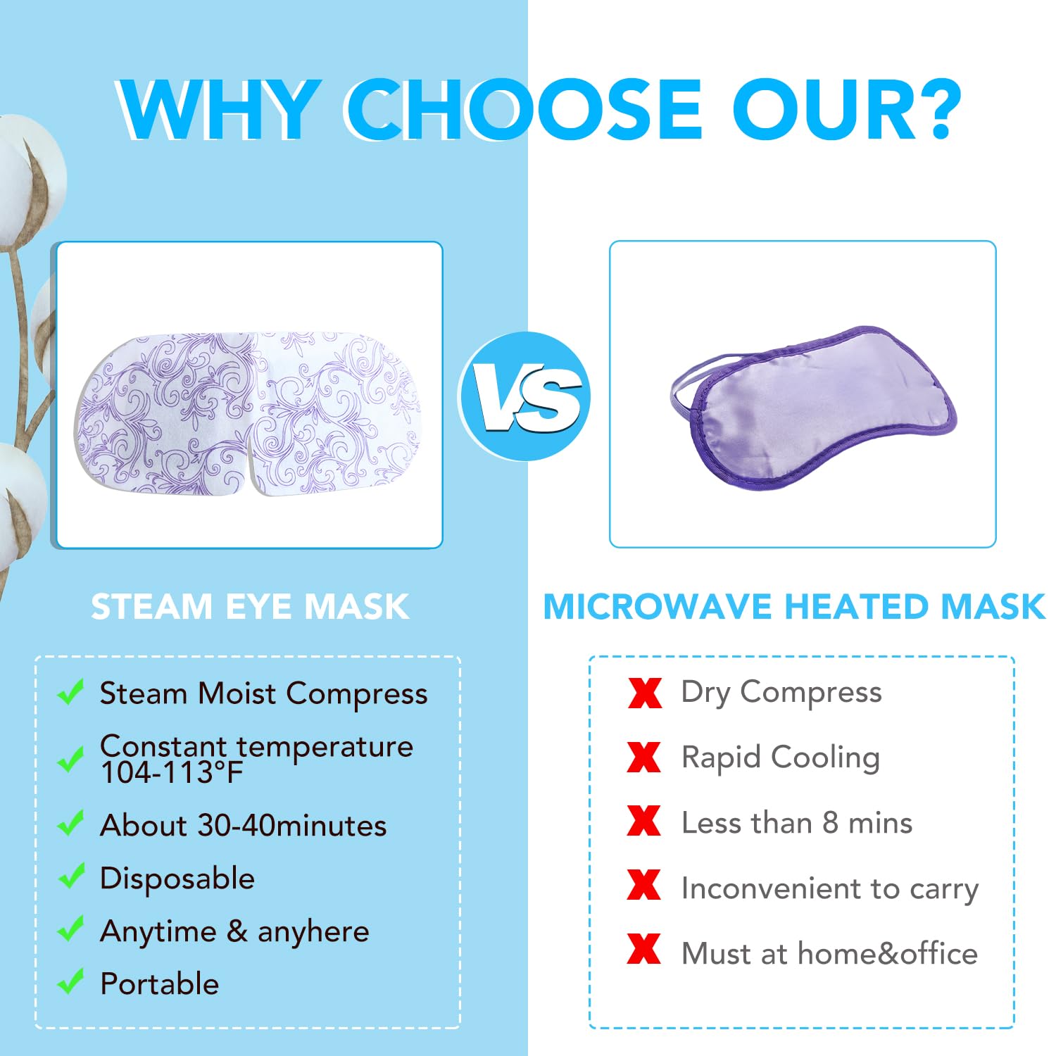 - 【Easy to use】Our Eye Masks for Dry Eyes Dark Circles and Puffiness only needs to be opened and worn to self heat, without the need for heating. The steam eye mask is equipped with flexible elastic ear hooks, which are comfortable to wear and suitable for any face shape and posture, day or night, sleeping or just taking a nap.