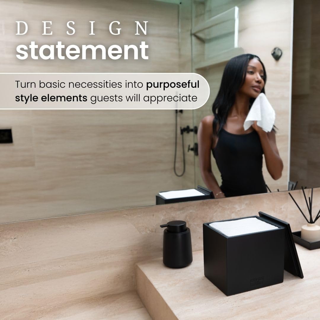 CLEAN SKIN CLUB Cement Box for 50 Disposable Clean Towels XL (Towels NOT Included), Concrete Container for Face Towelettes Bathroom Counter Storage, Cleansing Facial Dry Wipes - Matte Onyx